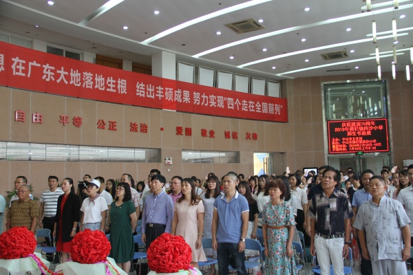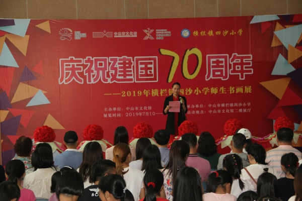 七月流火,翰墨飄香。在建國(guó)70周年即將來臨之際,四沙小學(xué)慶祝建國(guó)70周年師生書畫展7月10日上午在中山市文化館隆重開幕。中山市文化館副館長(zhǎng)方文女士、中山市教育學(xué)會(huì)陳春艷會(huì)長(zhǎng)、中山市文化館公共文化服務(wù)部主任邵秉英女士、橫欄鎮(zhèn)關(guān)工委主任吳淑玲女士、中山市老年書畫協(xié)會(huì)會(huì)長(zhǎng)歐淑瑜女士等市、鎮(zhèn)相關(guān)領(lǐng)導(dǎo)蒞臨指導(dǎo)。四沙小家長(zhǎng)委員會(huì)全體成員、親子志愿者和教師300多人出席了開幕式。