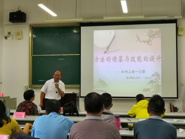下午是冷江山老師帶給東升中學骨干教師的是《方法的借鑒與技能的提升——中小學教師教學核心素養(yǎng)淺談》。冷老師講課時深入淺出,幽默風趣,把看似枯燥乏味的理論知識,講得生動有趣,充滿吸引力。冷老師的課堂,善于結(jié)合教學和生活的實際,把課程內(nèi)容化身如“隨風潛入夜,潤物細無聲”的春雨,讓東升中學骨干教師在不知不覺中受益匪淺,大有“聽君一節(jié)課,勝讀十年書”的感覺。