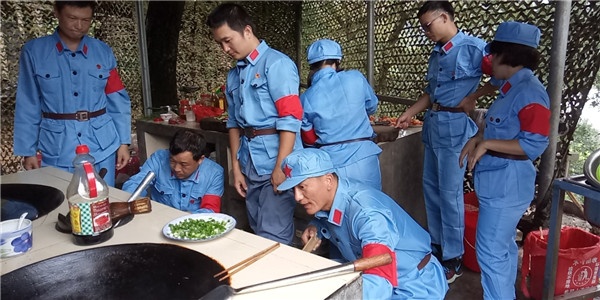 一大早學(xué)員們穿著整齊的紅軍服,來到井岡山紅軍訓(xùn)練場開始了紅色拓展訓(xùn)練活動(dòng),在基地教官的帶領(lǐng)下,學(xué)員們先學(xué)習(xí)了“三灣改編”的歷史背景,根據(jù)“三灣改編”的特點(diǎn)及要求進(jìn)行隊(duì)伍改編。學(xué)員們?cè)趦晌唤坦俚闹笓]下被分成了兩個(gè)團(tuán)隊(duì),并選出團(tuán)長、政委指揮系列團(tuán)隊(duì)活動(dòng),主要包括團(tuán)隊(duì)展示、傷員救護(hù)、自做紅軍餐、破譯密碼、齊心協(xié)力過草地、搶灘登陸等環(huán)節(jié)。第一環(huán)節(jié)是團(tuán)隊(duì)文化展示,兩個(gè)團(tuán)隊(duì)在團(tuán)長、政委的組織下制定了自己團(tuán)隊(duì)的團(tuán)名、口號(hào)、團(tuán)歌等并進(jìn)行展示;第二環(huán)節(jié)是傷員救護(hù),通過模仿紅軍戰(zhàn)士受傷,戰(zhàn)士們要通過自制單架將受傷戰(zhàn)士送回營地;第三環(huán)節(jié)是學(xué)員們通過合作自做紅軍餐,體驗(yàn)革命先烈們自強(qiáng)不息的精神;第四環(huán)節(jié)是破譯密碼,通過游戲體驗(yàn)的方式讓學(xué)員們體會(huì)到了團(tuán)隊(duì)領(lǐng)導(dǎo)的核心、團(tuán)隊(duì)目標(biāo)、團(tuán)隊(duì)紀(jì)律在一個(gè)團(tuán)隊(duì)中的重要性,培養(yǎng)了各學(xué)員的創(chuàng)造性思維,提高了學(xué)員對(duì)問題的認(rèn)識(shí)及解決問題的能力;第五個(gè)環(huán)節(jié)齊心協(xié)力過草地,分組比拼,展現(xiàn)團(tuán)隊(duì)合作的力量;第六個(gè)環(huán)節(jié)搶灘登陸,磨煉了各學(xué)員的意志,加強(qiáng)了各學(xué)員之間的溝通,培養(yǎng)了團(tuán)隊(duì)精神,讓大家體會(huì)到合作共贏所取得的成果?;顒?dòng)中,每位學(xué)員都在挑戰(zhàn)自己,戰(zhàn)勝自己,展現(xiàn)了積極向上、團(tuán)結(jié)一心、行為有序的蓬勃面貌。