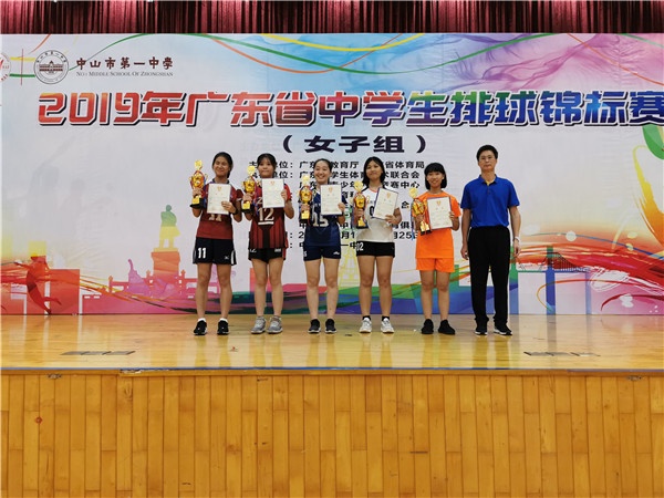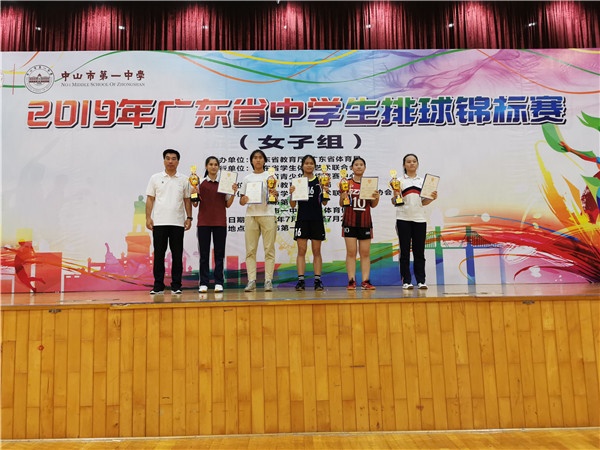 在25日下午的頒獎儀式中,廣東省學(xué)生體育藝術(shù)聯(lián)合會主席郭鼎文,中山市教育和體育局體衛(wèi)藝科科長陳威與副科長黎彩花,中山市一中校長王錫文,廣東省排協(xié)副秘書長、本次比賽仲裁委員黃超峰,廣東省排球協(xié)會裁委會委員、廣州大學(xué)體育學(xué)院體育系主任、本次比賽副裁判長陳卓儒教授等出席并為獲獎運動員和運動隊、教練員等頒發(fā)獎杯和證書。