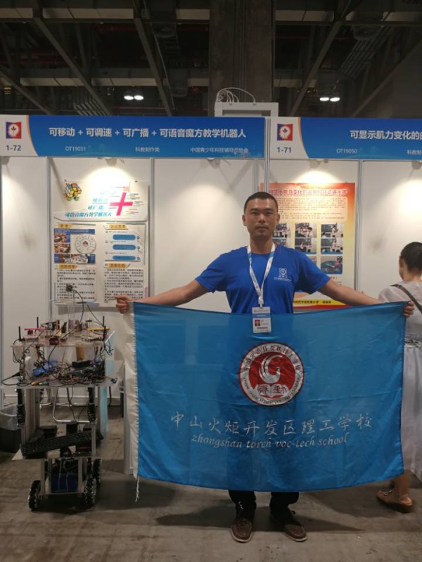開發(fā)區(qū)理工學(xué)校何享賢老師代表廣東出賽,經(jīng)歷了七天的布展、調(diào)試作品、評委問辯、公開展示,最終獲得了二等獎的佳績。