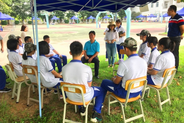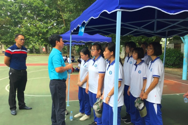 開訓(xùn)頭天,不少同學(xué)仍未適應(yīng)軍訓(xùn)強(qiáng)度,出現(xiàn)不同程度的身體不適。李茂興校長來到各班大本營,關(guān)心正在大本營休息的同學(xué)的身體狀況,鼓勵(lì)孩子們流血流汗不流淚,掉皮掉肉不掉隊(duì),爭當(dāng)優(yōu)秀學(xué)員。