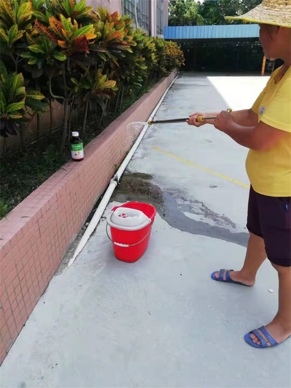 當(dāng)日,學(xué)校組織后勤人員對(duì)校園環(huán)境進(jìn)行大掃除,全面清理積水和雜物,特別是廁所、下水道、操場角落、垃圾桶、花壇等衛(wèi)生死角,以消除蚊蟲的孳生條件。孳生地的清理強(qiáng)調(diào)全方位展開,反復(fù)檢查補(bǔ)漏。另外,學(xué)校還利用化學(xué)藥物消殺蚊蟲,對(duì)校園各個(gè)角落進(jìn)行噴藥消毒,采取專業(yè)的方式從源頭切斷蚊蟲孳生。
