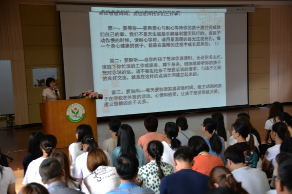 與此同時(shí),學(xué)校還組織了新生家長培訓(xùn)會(huì)。首先,戴織校長介紹了學(xué)校蓬勃的發(fā)展進(jìn)程、優(yōu)秀的行政隊(duì)伍、先進(jìn)的教育理念、雄厚的師資力量、特色校本課程與豐碩的育人成果,并詳細(xì)指導(dǎo)家長如何幫助孩子做好入學(xué)前的準(zhǔn)備,在學(xué)習(xí)、生活習(xí)慣等方面養(yǎng)成良好的習(xí)慣。隨后,李振華副校長、陳文卿主任也針對學(xué)校常規(guī)安排進(jìn)行了細(xì)致的介紹。從幼小銜接的專題講座中,家長們提高了對教育的認(rèn)識,學(xué)到了實(shí)用的教育知識和方法,為孩子們新學(xué)期的學(xué)習(xí)與成長夯實(shí)了基礎(chǔ)。