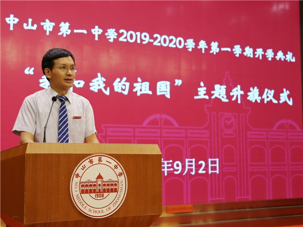 追求卓越,做最好的自己?!白鳛橹腥A兒女,我們要有一顆國強(qiáng)則民安的中國心…作為社會(huì)主義建設(shè)者和接班人,我們要有一種百折不撓,做最好的自己的自信和擔(dān)當(dāng)…作為中山一中人,我們要努力做到志存高遠(yuǎn)、身心健康、有社會(huì)責(zé)任感、有個(gè)性特長(zhǎng)…做最好的自己,不僅是個(gè)人發(fā)展的需要,也是國家繁榮、民族富強(qiáng)的需要。青年是祖國的未來、民族的希望,也是我們黨的未來和希望?!?開學(xué)禮上, 學(xué)校校長(zhǎng)王錫文以《愛國,從做最好的自己開始》寄語全校師生,希望大家都能朝著遠(yuǎn)大的志向,滿懷愛國熱情和奮斗豪情,在新中國成立70周年的新起點(diǎn),創(chuàng)造出更加美好的未來。