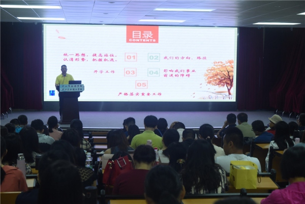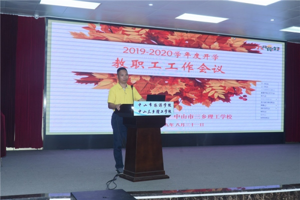 8月31日上午的全體教職工會(huì)議上,劉偉思校長(zhǎng)通報(bào)了暑期的部分工作:2019屆招生750人,粵菜師傅基地獲得扶持資金200萬(wàn),大師工作室獲扶持資金10萬(wàn),順利開展了粵菜師傅培訓(xùn)班等等。劉偉思校長(zhǎng)對(duì)暑假期間加班加點(diǎn)工作的教職員工們表示了感謝,同時(shí),也對(duì)全校教職員工提出了新一學(xué)年的工作要求:一、統(tǒng)一思想,提高站位,認(rèn)清形勢(shì),把握機(jī)遇。要對(duì)職業(yè)教育和技能培訓(xùn)的前景充滿希望。習(xí)近平考察甘肅職業(yè)學(xué)校指出,做強(qiáng)實(shí)體經(jīng)濟(jì)需要大量技能型人才,需要大力弘揚(yáng)工匠精神,發(fā)展職業(yè)教育前景廣闊、大有可為。李克強(qiáng)指出:開展大規(guī)模職業(yè)技能培訓(xùn),是提升勞動(dòng)者就業(yè)創(chuàng)業(yè)能力、緩解結(jié)構(gòu)性就業(yè)矛盾、促進(jìn)擴(kuò)大就業(yè)的重要舉措,是經(jīng)濟(jì)邁向高質(zhì)量發(fā)展的重要支撐;要落實(shí)好中國(guó)共產(chǎn)黨中山市第十四屆委員會(huì)第七次全體會(huì)議研究部署的工作,深刻把握中山發(fā)展現(xiàn)狀,找準(zhǔn)工作著力點(diǎn)和突破口;要深刻認(rèn)識(shí)香港暴亂的影響、危害,堅(jiān)決維護(hù)國(guó)家的主權(quán)、安全和發(fā)展利益。二、堅(jiān)持以習(xí)近平新時(shí)代中國(guó)特色社會(huì)主義思想為指導(dǎo),全面貫徹黨的教育方針,落實(shí)立德樹人根本任務(wù),堅(jiān)持中山德育文化理念,完善中山德育工作體系,深化課程育人、文化育人、活動(dòng)育人、實(shí)踐育人、管理育人、協(xié)同育人,著力培養(yǎng)擔(dān)當(dāng)民族復(fù)興大任、有博愛創(chuàng)新精神的時(shí)代新人。學(xué)校將以黨建工作為抓手,進(jìn)一步打造干部隊(duì)伍,并采用加強(qiáng)黨的領(lǐng)導(dǎo)--把握意識(shí)形態(tài)--提升育人水平--突出頂層設(shè)計(jì)--狠抓教學(xué)、德育常規(guī)--實(shí)施精細(xì)管理--開展專業(yè)研究--實(shí)現(xiàn)立德樹人的路徑,落實(shí)學(xué)校各項(xiàng)工作任務(wù)。三、開學(xué)后的課程安排、班主任以及任課教師安排、新生接待、課室安排、后勤服務(wù)、開學(xué)典禮等各項(xiàng)事務(wù)必須落實(shí)到位,責(zé)任到人。四、本學(xué)年度必須落實(shí)的確保政治安全,進(jìn)一步加強(qiáng)意識(shí)形態(tài)工作、科學(xué)設(shè)置課程、落實(shí)安全工作、開展“不忘初心,牢記使命”主題教育、建立健全教師師德建設(shè)長(zhǎng)效機(jī)制、進(jìn)一步整合升級(jí)改造專業(yè)等18個(gè)重要工作。