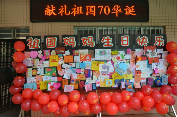 為了表達全體師生對祖國七十華誕的祝福,良都小學還開展了“我為祖國媽媽送祝?!薄拔覟樽鎳鴭寢屪鰪埳湛ā?、“我與國旗合個影”等系列活動,新學期第一天,良都小學校園洋溢著全體師生濃烈的愛國之情和對祖國的美好祝愿。