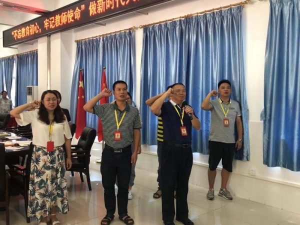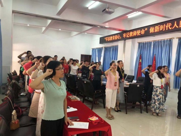 會議最后一項,由吳校長帶領(lǐng)全體教師進(jìn)行教師宣誓,全體教師齊聲重溫教師誓詞,為教育發(fā)展、國家繁榮和民族振興努力奮斗!