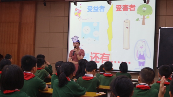本次研討活動先由劉紫芹老師執(zhí)教三年級《森林聽證會》和謝堅云老師執(zhí)教四年級的《這樣想象真有趣》。劉紫芹老師教學注意激發(fā)學生的興趣,猜謎語引入新課,通過模擬一場森林聽證會,學生角色扮演,代入情境,讓學生在交流討論中放飛想象,清楚合理表達。學生在積極參與課堂學習的過程中能夠領(lǐng)悟童話的編寫既需要大膽想象也需要表達有序。謝堅云老師以“哆啦A夢”的百寶箱導(dǎo)入,激發(fā)學生想象,通過看人物猜故事,鼓勵學生奇妙想象,讓學生在愉快輕松的環(huán)境下學習,學生在謝老師的引領(lǐng)下能夠發(fā)散思維,不少學生能夠有自己的獨特想象,落筆成文。