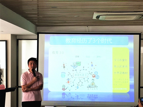 16日上午,杭州市西湖區(qū)教育信息與裝備中心郤云江副主任給研修班學(xué)員帶來了《信息技術(shù)促進(jìn)教學(xué)融合創(chuàng)新》的專題講座。郤副主任詳細(xì)詮釋了信息技術(shù)演變過程、教育經(jīng)歷時(shí)代變化,對(duì)互聯(lián)網(wǎng)+教育的案例進(jìn)行了分析,并與研修班學(xué)員進(jìn)行了深度交流和探討。