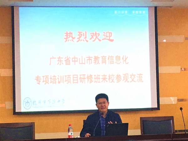 2019年10月16日,中山市教育信息化專項(xiàng)培育項(xiàng)目研修班進(jìn)入第二天的研修學(xué)習(xí)。市教育信息中心、市教師進(jìn)修學(xué)院和市培育項(xiàng)目學(xué)校的領(lǐng)導(dǎo)及負(fù)責(zé)人一行42人,在浙江杭州東坡酒店二樓會(huì)議廳和杭州市下沙中學(xué)開展研修學(xué)習(xí)。