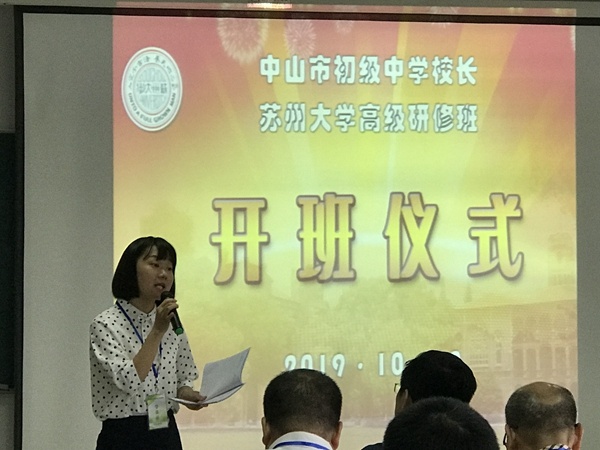 “養(yǎng)天地正氣、法古今完人”,2019年10月12日,美麗的蘇州大學(xué)迎來了40余位來自廣東省中山市初級中學(xué)校長高級研修班的學(xué)員,組織者希望借助蘇州大學(xué)這一全國知名平臺,通過專家講座、現(xiàn)場教學(xué)、浸潤式跟崗學(xué)習(xí)交流三大階段,以豐富的學(xué)習(xí)形式,整體推進中山市初中校長隊伍的專業(yè)成長,是繼2004年后中山市教體局為全市初中校長組織的又一次外出集中培訓(xùn)活動。