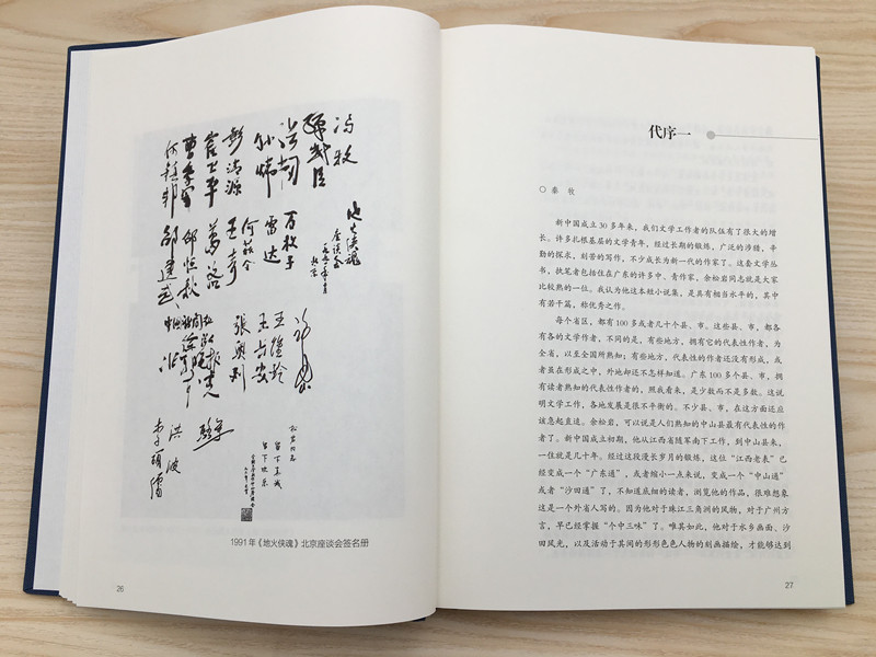 《中山當(dāng)代文藝名家·余松巖》收錄的1991年《地火俠魂》北京座談會(huì)簽名冊(cè)(右圖)