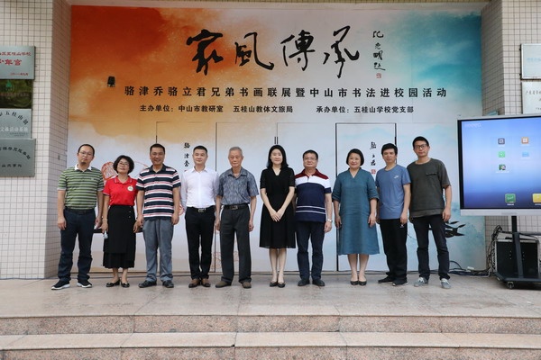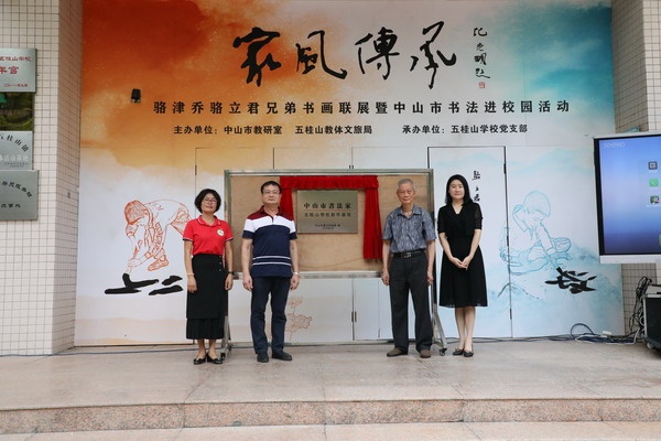 為傳承和弘揚(yáng)中華優(yōu)秀傳統(tǒng)文化,推進(jìn)學(xué)校書(shū)法教育,培養(yǎng)學(xué)生對(duì)書(shū)法的興趣,9月25日下午,五桂山學(xué)校在體育館舉辦了“家風(fēng)傳承——駱津喬、駱立君兄弟書(shū)畫(huà)展暨中山市書(shū)法進(jìn)校園活動(dòng)”。著名漫畫(huà)家方唐先生、五桂山黨工委副書(shū)記、人大工委主任武裝部部長(zhǎng)李佳利以及中山市書(shū)法協(xié)會(huì)主席駱培華先生,中山市教師書(shū)法協(xié)會(huì)主席李武耀老師、中山市教研室書(shū)法教研負(fù)責(zé)人梁雪菊老師出席活動(dòng)。