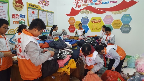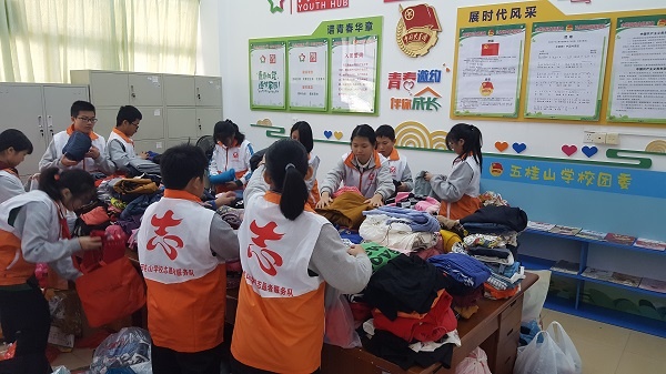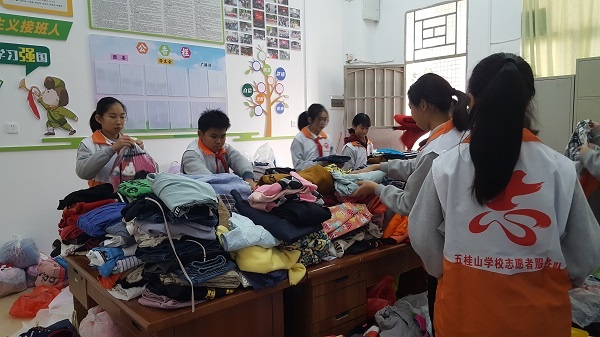 活動恰逢新年的第一波寒潮,但也抵擋不住同學(xué)們的熱情,在短短的3天時間里,五桂山學(xué)校的學(xué)生踴躍參加活動,把家里閑置不穿的衣服收集起來,由各班負(fù)責(zé)人統(tǒng)一交到了團(tuán)委辦公室。交上來的衣物堆滿了團(tuán)委辦公室的辦公桌和過道。五桂山學(xué)校的學(xué)生志愿者認(rèn)真整理衣服,發(fā)現(xiàn)絕大部分的衣服都是比較新的,基本符合捐贈的要求。整理完畢后,衣物將全部上交到中山市青年志愿者協(xié)會,捐贈給中山對口支援地區(qū),幫助貧困區(qū)兒童添衣添物,奉獻(xiàn)愛心。
