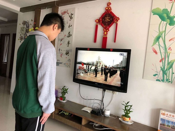 4月4日上午10時(shí),防空警報(bào)鳴響。室外,汽車、火車、艦船鳴笛,山河嗚咽,舉國齊悲。身處各地的五桂山學(xué)校的師生們懷著沉痛的心情,在電視機(jī)前默哀三分鐘,深刻緬懷英雄和逝去的同胞,莊重感,肅穆感撲面而來。