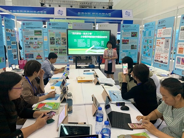 在三天的教博會上,“小學(xué)數(shù)學(xué)‘四元聯(lián)動-技術(shù)介導(dǎo)’精準教學(xué)模型的構(gòu)建與實踐”展位前迎來了來自全國各地的校長、小學(xué)數(shù)學(xué)教師,甚至高校學(xué)者對這一研究成果的關(guān)注,他們一致認可對教學(xué)精益求精的追求,贊賞項目組精細的研究成果,并與李老師交換了聯(lián)系方式,提出后續(xù)學(xué)習(xí)交流的意向。