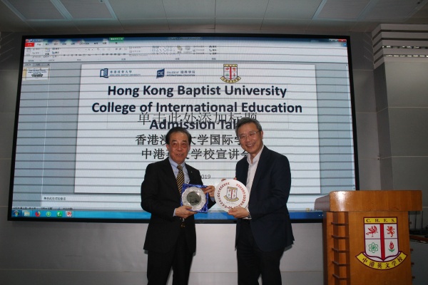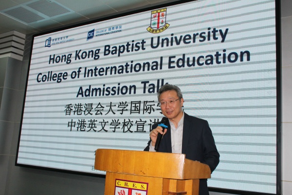 當日下午,在蔡國贊博士、劉朝榮校長等校領導以及中港學生大使的陪同下,鐘志杰院長一行首先參觀了中港校園。接下來,在校資訊室舉行的香港浸會大學國際學院宣講會上,校董事長蔡國贊博士代表學校對鐘志杰院長等領導的到來表示歡迎,對香港浸會大學長期以來對中港學子的關心、支持和幫助表示感謝。鐘志杰院長稱贊中港始終與國際先進教學理念保持同步,堅持不懈推進國際交流,并對學校致力于培養(yǎng)具有國際競爭力人才的辦學理念、豐富精彩的校園文化以及豐碩的教育成果給予了高度認可與評價,同時歡迎更多的中港學子選擇香港繼續(xù)完成自己的求學理想。最后,香港浸會大學國際學院副總監(jiān)林非恩博士詳細介紹了香港浸會大學國際學院的相關資訊與錄取條件,部分家長與F.6全體同學參與了此次宣講會。