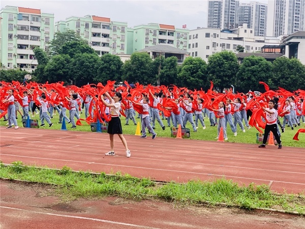 為了讓學(xué)生們進(jìn)一步地了解感受水滸人物的獨(dú)特魅力,增強(qiáng)自身身體素質(zhì),北區(qū)小學(xué)經(jīng)過(guò)研究討論,用《好漢歌》編排了一套活力滿滿,動(dòng)感十足的校本操,搭配著節(jié)奏感非常強(qiáng)烈的歌曲,學(xué)生跳起來(lái)動(dòng)感、精神。在動(dòng)感、豪爽的步子中舞起腰間的紅綢帶,顫步晃頭,扭腰抖肩。整體動(dòng)作爽朗風(fēng)趣、活潑大方。搭配上熱情豪邁的《好漢歌》,既能感受到水滸英雄的疏朗豪情,又能很好地鍛煉身體,每日大課間鈴聲響起時(shí),他們便會(huì)迫不及待地拿出屬于自己的紅綢帶,迅速地排好隊(duì)集中在操場(chǎng)上,跟隨著彭靜老師的口令學(xué)習(xí)集體舞動(dòng)作。驕陽(yáng)如火,孩子們手中的紅綢舞動(dòng)起來(lái),連成一片紅色的海洋。