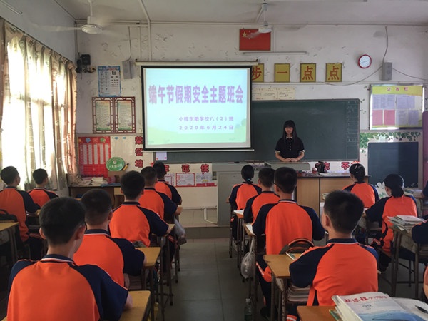 假期時(shí)間,同學(xué)們校外活動(dòng)較多,容易發(fā)生安全事故,因此,今天上午,東陽學(xué)校安全處統(tǒng)一部署,由各班班主任師生進(jìn)行了一次“端午節(jié)假期安全主題班會(huì)”。