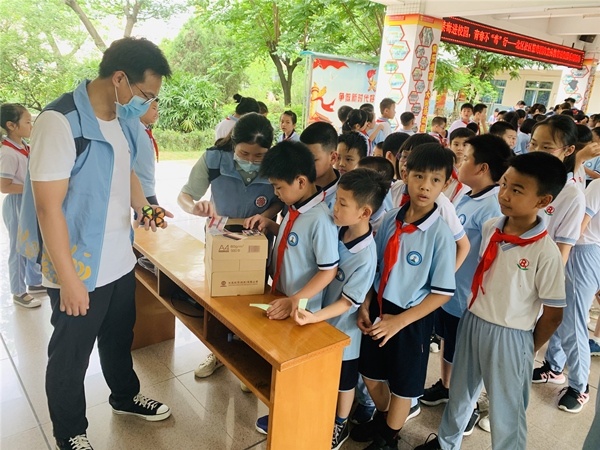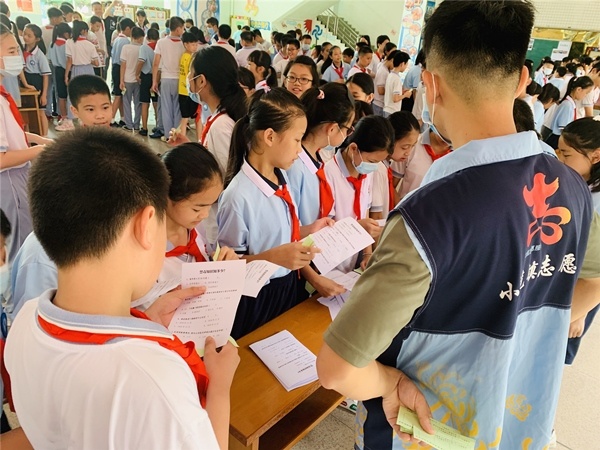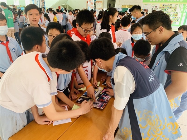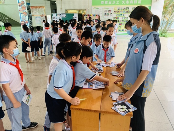 為進(jìn)一步推進(jìn)學(xué)校禁毒宣傳工作的普及,充分發(fā)揮學(xué)校教育在毒品預(yù)防教育活動中的重要作用,使廣大學(xué)生認(rèn)清毒品的危害,進(jìn)一步增強(qiáng)防毒、拒毒意識,確?!皩W(xué)生不涉毒、校園無毒品”,在6.26國際禁毒日來臨之際,北區(qū)小學(xué)聯(lián)合北區(qū)社區(qū)開展“禁毒進(jìn)校園,青春不毒行”禁毒預(yù)防宣傳教育進(jìn)校園系列活動,6月24日上午,由社區(qū)組織的禁毒宣傳知識攤點(diǎn)小游戲在學(xué)校教學(xué)樓一樓大堂拉開帷幕。