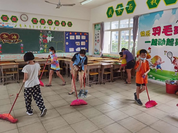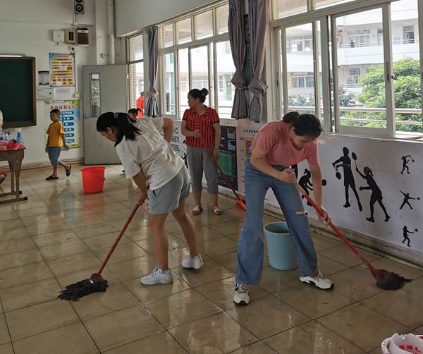清潔活動開始了,校園里,校道上,教室里,走廊上到處都是義工們忙碌的身影,他們有的打掃教室,有的提著水桶等待打水,有的搬著桌椅......天氣雖然炎熱,但阻擋不了親子義工隊(duì)的熱情,他們在忙碌中有說有笑,露出一張張滿意的笑臉。