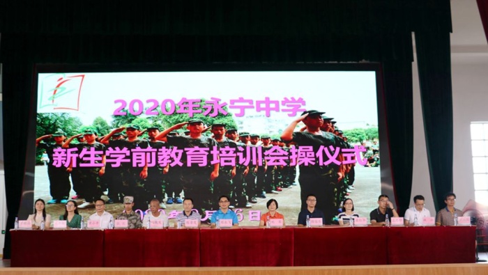 ——中山市永寧中學(xué)舉行初一新生學(xué)前教育培訓(xùn)會操儀式發(fā)布時間:2020-09-02 10:49 信息來源:本網(wǎng)站 瀏覽次數(shù):0