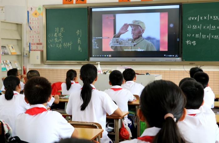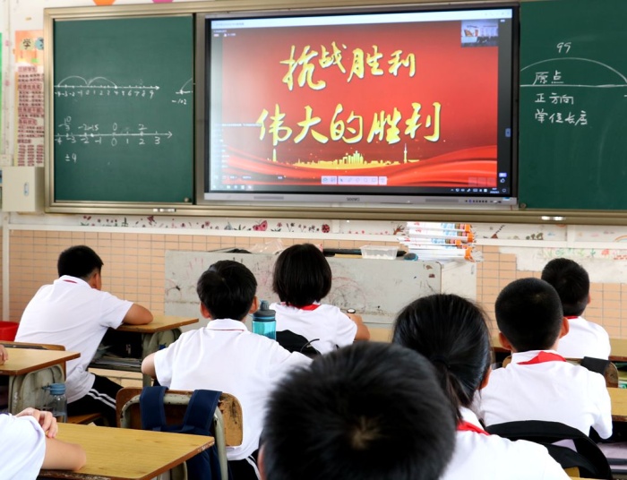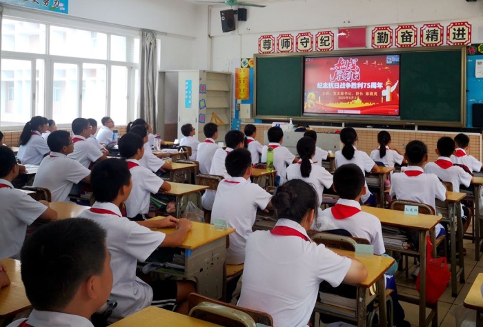 首先,進行線上升旗儀式。接著,陳清茂校長以“紀念抗日戰(zhàn)爭勝利75周年”為主題,對全校師生進行了愛國主義教育,通過內(nèi)容詳實、圖文并茂的課件,分紀念日簡介、沉痛歷史回顧、抗戰(zhàn)勝利意義和啟示三部分講授。講到動情處,陳校長深情地說:“戰(zhàn)爭遠去,英雄不朽,硝煙散盡,精神長存。讓我們銘記抗戰(zhàn)歷史,弘揚民族精神!讓我們?yōu)閯倮吒瑁蛴⑿壑戮?!?/p>