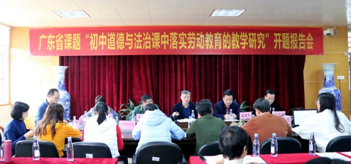 2020年12月23日下午,中山市永寧中學(xué)在學(xué)校教師會議室舉行2020年廣東省教育研究院教育研究課題《初中道德與法治課中落實勞動教育的教學(xué)研究》的開題報告會。出席本次開題報告會的專家和領(lǐng)導(dǎo)有市教研室綜合實踐教研員馮玉生部長、市政治學(xué)科教研員夏建軍老師、中山市小欖中學(xué)政治科組長蘇成林老師、中山市永寧中學(xué)政治科組長陳提蘭老師、永寧中學(xué)的陳清茂校長和陳華梁副校長,還有課題組的全體成員和永寧中學(xué)在省、市、鎮(zhèn)的課題主持人參加了開題報告會。