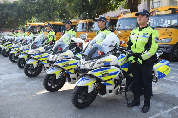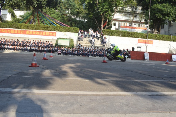 活動最后,進(jìn)行的是“鐵騎展示和互動”環(huán)節(jié),交警鐵騎隊員們?yōu)橥瑢W(xué)們表演了鐵騎騎行、繞樁等風(fēng)采展示,鐵騎隊英姿颯爽,一展風(fēng)采,讓現(xiàn)場的同學(xué)們拍手叫好、掌聲不斷。表演完畢后,鐵騎隊員們與同學(xué)們進(jìn)行了親切的互動,不少同學(xué)在鐵騎隊員的幫助下,穿戴上鐵騎日常裝備,體驗鐵騎的工作,感受鐵騎的使命,還對鐵騎隊員提出了許許多多的心中的小疑問,鐵騎隊員都進(jìn)行了耐心回答并與同學(xué)們合影留念。