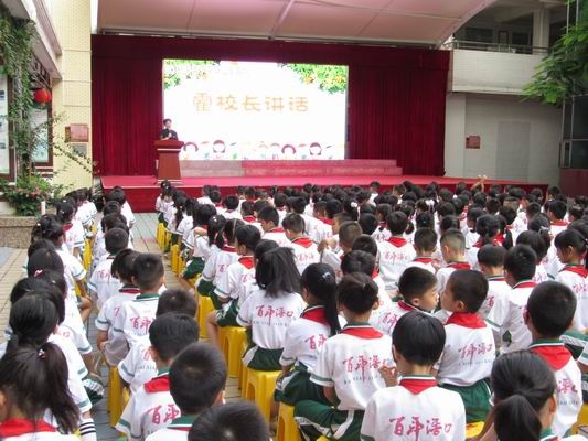 首先,由主持人宣布典禮開始,在莊嚴的升旗儀式后,霍熔坪校長上臺致辭?;粜iL帶領全體師生回顧精彩而又充實的一學期。學校在教育教學工作取得了突破性的發(fā)展。一共獲集體獲獎20多項:廣東省國際跳棋優(yōu)秀特色學校、中山市師德工作先進集體、中山市依法治校示范校、中山市文明校園、中山市先進年級家長委員會、中山先進班級家長委員會、中山市特色班集體、小欖鎮(zhèn)目標評估先進單位……