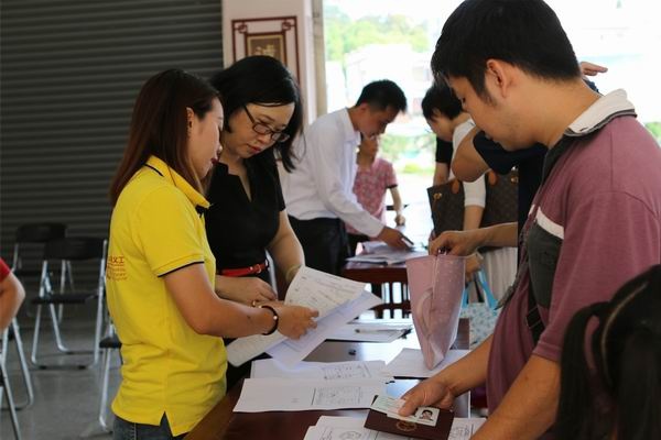 由于今年的招生工作只為期一天,因此18日上午7點沒到,校門外就已經(jīng)“火爆”起來,人潮如織。早早就在校門外各處路口站崗的交通義工,則指揮著大家有序地停放車輛。而這邊廂,校園內(nèi)各個功能區(qū)域,也已有老師和家長義工守候著,隨時準(zhǔn)備接待前來報名的家長和學(xué)童了。