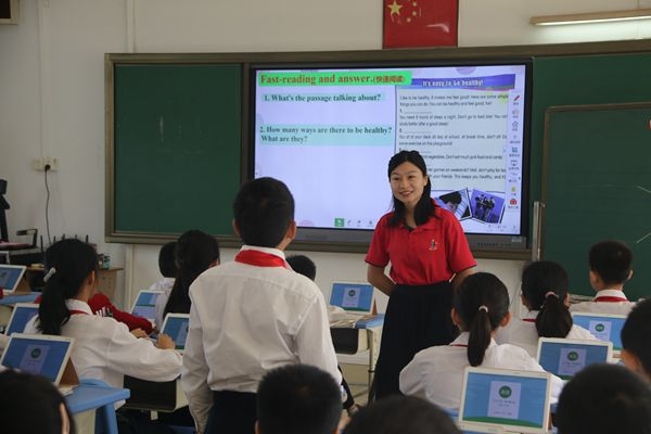 活動議程安排緊密有序,活動由九洲基小學黃永恒副主任主持。活動第一項先是由九洲基小學的甘小梅老師與石岐中心小學的高遠老師進行閱讀示范課的展示。首先由甘小梅老師展示的是六年級 Unit 3 Staying Healthy 的 Reading and writing 。甘老師展示了一堂精彩的人機結(jié)合的互動閱讀課堂,甘老師充分把一體機以及讀書郎的現(xiàn)代多媒體技術融入到閱讀教學中,課堂中學生積極參與到課堂的活動中,在老師的問題引導下,學生的閱讀興趣得到了大大的提升,同時整節(jié)課上老師著重培養(yǎng)學生的提取信息閱讀技能,使得學生在英語閱讀認讀能力上得到一定的提升;緊接著高遠老師展示的是六年級 Unit 3 Staying Healthy 的 More reading and writing 。而由高遠老師展示的課堂則是給人一種潤物細無聲的感受,純熟流利的英語把學生帶進了閱讀的海洋中,是學生在快樂地閱讀中感受如何進行科學的飲食、科學的保持健康。兩節(jié)課下來,學生充分展示了九小學子活潑與自律結(jié)合的學習氛圍,動靜分明,該靜則靜,該動則動,得到與會老師的一致肯定。