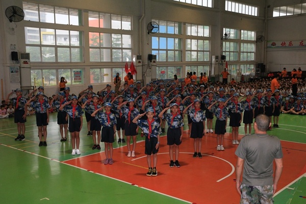 9月2日,新學(xué)期開學(xué)第一天,小欖鎮(zhèn)九洲基小學(xué)全體師生歡聚學(xué)校體育館,舉行簡單而隆重的2019學(xué)年度上學(xué)期開學(xué)典禮。廣州黃埔少年軍校軍訓(xùn)基地外聯(lián)部主任許漢杰先生、廣州黃埔少年軍校軍訓(xùn)基地外聯(lián)隊長駱衛(wèi)清教官;九洲基小學(xué)校長艾斌先生;九洲基小學(xué)副校長黃景鋒先生出席了本次典禮。