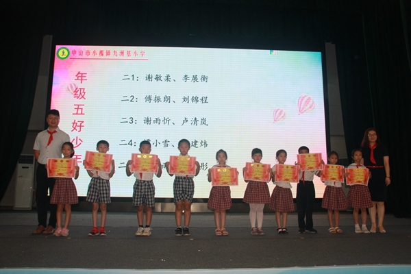 散學典禮中表彰環(huán)節(jié)由梁雪芬老師主持,梁老師宣讀了校五號少年、成績優(yōu)異獎、書香家庭、武術之星、體育之星等獲獎名單,最后還對本學期的校級優(yōu)秀教師、文明班、優(yōu)秀正副班主任等進行了表彰,九洲基社區(qū)領導及九洲基小學行政為獲獎學生、老師和班級頒獎。