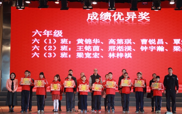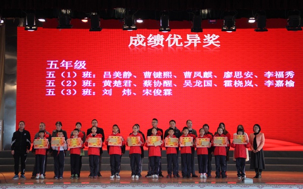 第三個環(huán)節(jié)是頒獎環(huán)節(jié),首先對每個年級的前十名進行頒獎,由獲獎的孩子們?yōu)榧议L們上紅花,感恩父母的付出。接下來分別對五好少年,風紀文明標兵進行頒獎,鼓勵孩子們講文明、懂禮儀、積極參與學?;顒印?/p>