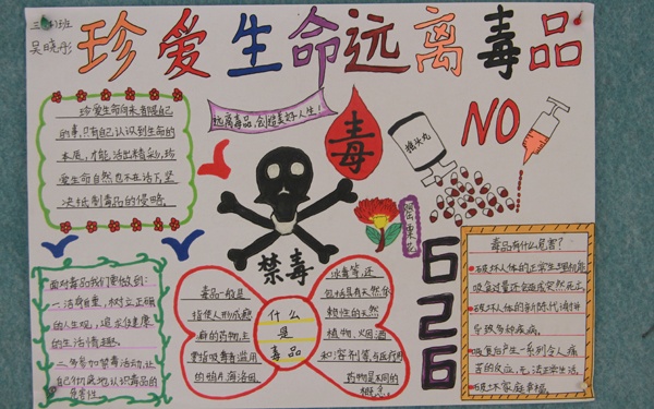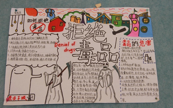 本次開展的禁毒手抄報比賽,對同學(xué)們進(jìn)行禁毒知識宣教活動,提高學(xué)生禁毒意識。積極營造了一個文明、凈化的校園環(huán)境。