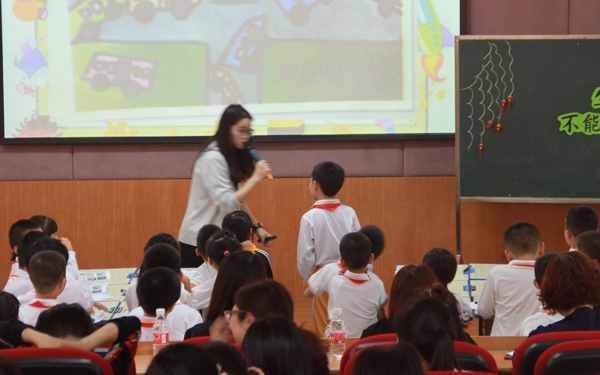 活動分四個議程進行,先是梁梓韻老師的觀摩課,然后梁梓韻老師對這節(jié)課的說課,之后是各學(xué)校老師的評課及領(lǐng)導(dǎo)講話總結(jié)。