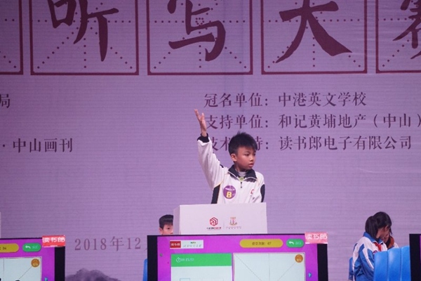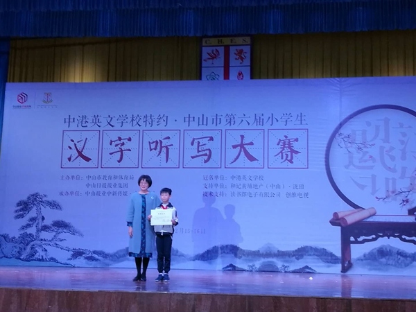 12月15日,微風(fēng)吹散了暗灰的陰霾,中山市第六屆小學(xué)生漢字聽寫大賽在中港英文學(xué)校大禮堂隆重開幕。簡短的開幕式后,分六組進(jìn)行了預(yù)賽。在李威副主任、蔡惠芳和麥萍娟的帶領(lǐng)下,由陸韜成、吳文昊、李承鑫、肖諾然和李寶儀五位選手組成的升平小學(xué)代表隊(duì),淡定從容走上比賽場。主持人出題,選手用平板電腦答題。倘若答對(duì),比賽繼續(xù)進(jìn)行;倘若答錯(cuò),選手被淘汰,換下一位選手答題。就這樣你來我往,直到場上只剩下四支隊(duì)伍為止。一個(gè)回合,兩個(gè)回合……在最初稍顯弱勢的情況下,升平的小隊(duì)員們奮勇拼搏,與來自中山其他鎮(zhèn)區(qū)的另外七支隊(duì)伍群雄競爭。最后,升平代表隊(duì)以明顯的優(yōu)勢和另一隊(duì)同時(shí)晉級(jí)復(fù)賽。李承鑫同學(xué)以答對(duì)11題的戰(zhàn)績晉升角逐“學(xué)霸冠軍賽”。