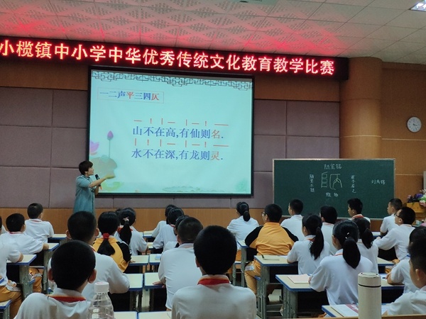 為推進(jìn)中小學(xué)中華優(yōu)秀傳統(tǒng)文化教育課程建設(shè)與實(shí)施工作,以賽促研,探索傳統(tǒng)文化課堂教學(xué)的科學(xué)方式,提升教師教育能力,小欖鎮(zhèn)于11月14日在聯(lián)豐小學(xué)舉行了小學(xué)中華優(yōu)秀傳統(tǒng)文化教育課教學(xué)比賽。升平小學(xué)韓福錕老師參加了本次比賽,她執(zhí)教的《陋室銘》榮獲本次比賽一等獎(jiǎng),并將代表鎮(zhèn)參加中山市首屆中小學(xué)中華優(yōu)秀傳統(tǒng)文化教育課教學(xué)比賽。