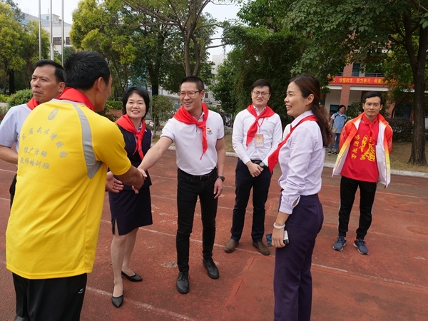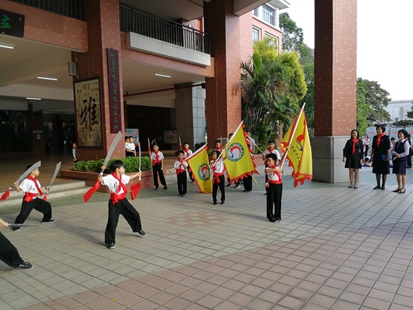 11月8日下午的操場、校道和一樓大堂鑼鼓喧天,舞獅迎賓,熱鬧非凡,原來是中山市小欖鎮(zhèn)中國少年先鋒隊第三次代表大會在升平小學(xué)舉行,有來自小欖鎮(zhèn)的滘口小學(xué)、永寧小學(xué)、升平小學(xué)的醫(yī)療輔助隊、鼓號隊和動感中隊參加了本次助興和節(jié)目展示活動。