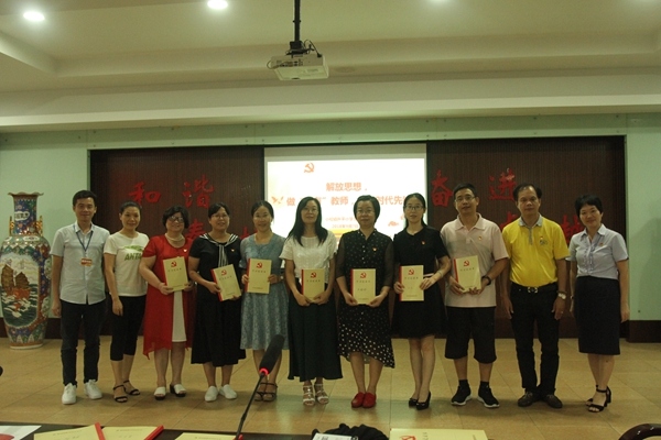 接著,黨支部書記麥校長向全體黨員發(fā)出倡議——“解放思想,做‘四有教師’,爭當(dāng)時代先鋒” 。旨在進(jìn)一步提高基層黨組織的凝聚力和戰(zhàn)斗力,激發(fā)黨員教師先鋒角色意識,增強黨員的榮譽感、責(zé)任感和使命感,保持黨員隊伍的先進(jìn)性和純潔性。麥書記強調(diào):一是要主動學(xué)習(xí)“強意識”。讓每一位黨員主動亮出身份,不斷增強政治意識,強化黨員意識,提升自我教育、自我管理、自我覺醒的自覺性,讓自己在各個方面都成為集體中的先鋒形象。二是要解放思想“強信念”。始終牢記入黨誓詞,堅定理想信念,不忘初心。尤其要有攻堅克難的決心,敢于直面問題,切實剖析自身存在的問題,有不解決問題不罷休的決心。三是要勇于反思“當(dāng)先鋒”。要求黨員教師要立足崗位講貢獻(xiàn),在學(xué)校各項教育教學(xué)工作中勇當(dāng)先鋒,在關(guān)鍵時刻站得出來、沖得上去;在難題面前敢闖敢試、敢為人先;在矛盾面前敢抓敢管、敢于碰硬;在風(fēng)險面前敢作敢為、敢擔(dān)責(zé)任。四是關(guān)于跨越“促創(chuàng)新”廣大黨員教師要發(fā)揮自己的聰明才智,要具備“到教育教學(xué)前線展身手,到群眾前面挑重?fù)?dān),到急、難、險、重的崗位上錘煉黨性”勇氣、直面問題的決心、迎接挑戰(zhàn)的氣概、直面問題,帶頭創(chuàng)新,做創(chuàng)新的骨干。