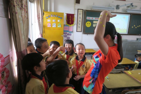 王澤娜老師以視頻《傳遞微笑,讓世界充滿愛!》作為課堂導(dǎo)入,讓學(xué)生懂得微笑的重要性。緊接著,王澤娜老師以盛豐小學(xué)學(xué)生生活中常見的兩個(gè)小矛盾為素材,讓學(xué)生通過(guò)演小戲劇的方式思考如何解決生活中常見的小矛盾,從而讓學(xué)生明白微笑可以消除生活中的誤會(huì)。最后,王澤娜老師通過(guò)簡(jiǎn)述抗癌漫畫家熊頓積極樂觀抗癌的故事,讓學(xué)生小組合作創(chuàng)造一個(gè)微笑鼓勵(lì)造型鼓勵(lì)熊頓姐姐,從而讓學(xué)生學(xué)會(huì)用微笑鼓勵(lì)他人。王澤娜老師還抓住時(shí)機(jī),讓學(xué)生在課堂上通過(guò)微笑,將自己內(nèi)心的愛與鼓勵(lì)傳遞給正坐在自己身旁的父母。整節(jié)課在充滿微笑和感動(dòng)中結(jié)束。