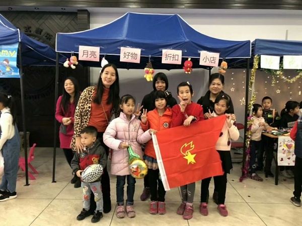 現(xiàn)場中還有來自盛豐小學二至六年級共15對親子家庭參與了嘉年華活動。盛豐小學自從開展省級德育課題研究以來,紅領(lǐng)巾假日小分隊“抱團實踐”探索,贏得家長的配合及認可。紅領(lǐng)巾小分隊實踐活動之假日愛心集市特色活動——在真實的社會環(huán)境中嘗試經(jīng)營之道?;顒釉缟?點開始,可是8點30分,各項準備工作已緒,一個個富有特色的攤位已經(jīng)搭好了。各攤位的物品很豐富。各種書籍、各類文具、各種飾品,各類小玩具,它們整齊地擺放在醒目的位置,孩子們的手工廣告也凝聚了他們的智慧,它們就是一幅幅招牌。盛豐愛心集市,人頭涌涌,熱鬧非凡?,F(xiàn)場有書法小組的同學與小欖書法家同臺揮毫寫春聯(lián),有當老板的孩子們,走出柜臺推銷產(chǎn)品,走出柜臺叫賣!孩子們不厭其煩地向顧客介紹自己的物品,每當看見物品出手,心中歡喜,買者獲得物美價廉的商品,心里亦是美滋滋的。