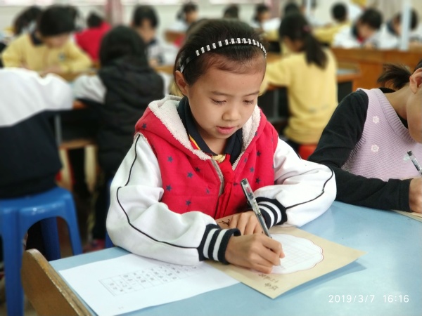 2月28日下午,盛豐小學(xué)20個(gè)班級(jí)進(jìn)行了初賽,每班競(jìng)選出5名同學(xué)參加3月7日的決賽。學(xué)生對(duì)此次比賽表現(xiàn)出極大的熱情,比賽以課內(nèi)古詩(shī)為書寫主題。比賽現(xiàn)場(chǎng),參賽者們個(gè)個(gè)滿懷激情,用心書寫每一個(gè)筆畫、每一個(gè)漢字。同學(xué)們握筆正確,坐姿端正,表現(xiàn)出良好的書寫習(xí)慣,所寫作品筆畫流暢,橫平豎直,結(jié)構(gòu)勻稱,整體美觀,在短短的時(shí)間內(nèi)現(xiàn)場(chǎng)完成自己的作品。
