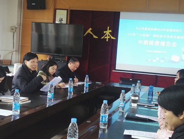 2019年1月4日,盛豐小學(xué)彭新貴主任主持的中山市教育科研2016年度規(guī)劃項目《小學(xué)“小戲劇”課程的開發(fā)和實施研究》中期報告會在學(xué)校會議室舉行。課題過程管理人中山市教育教學(xué)研究室陳春艷副主任親自到會指導(dǎo)。全體課題組成員聆聽了報告。