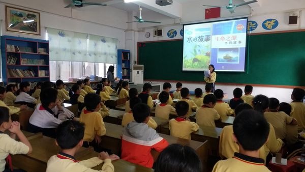 五(3)班展示的主題是“珍惜水資源”。陳嘉鈴?fù)瑢W(xué)分享了讀《水的故事》的心得體會。徐傲翔同學(xué)分享了讀《神奇校車之水的故事》的閱讀心得。何俊志同學(xué)現(xiàn)場給大家做了一個《縱橫交錯的管道》的小實驗,讓同學(xué)們認識到保護水資源的重要性。