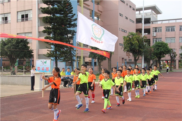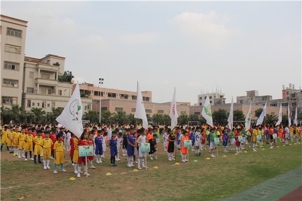 為了更好地鞏固學(xué)校園足球特色,宣揚(yáng)校園足球文化,營造良好的校園足球氛圍,3月10日下午三點(diǎn)半,小欖鎮(zhèn)西區(qū)小學(xué)在田徑場舉行了學(xué)校第七屆校園足球文化節(jié)開幕式。全校師生參加了此次活動。看,鮮艷的五星紅旗在前面引路!聽,激昂的《運(yùn)動員進(jìn)行曲》回蕩校園。國旗隊(duì)、文化節(jié)旗隊(duì)引領(lǐng),全校21個(gè)班的班級男女足球隊(duì)員依次進(jìn)入運(yùn)動場。