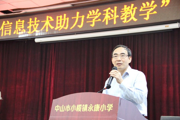 然后,華南師范大學(xué)教育技術(shù)副院長(zhǎng)、博士生導(dǎo)師的胡小勇教授以《基于“智慧課堂”的教學(xué)創(chuàng)新》做了專題講座。胡教授結(jié)合事例幽默風(fēng)趣地介紹了什么是“智慧教育”,“智慧課堂”不單單只是技術(shù)問題,而應(yīng)該強(qiáng)調(diào)六維關(guān)注:關(guān)注技術(shù)環(huán)境、關(guān)注課程資源、關(guān)注教師發(fā)展、關(guān)注學(xué)科實(shí)踐、關(guān)注學(xué)生變化、關(guān)注教學(xué)效率。這樣才能達(dá)到新技術(shù)與教學(xué)的高度融合創(chuàng)新,讓與會(huì)老師深受啟發(fā)、拍手叫好。