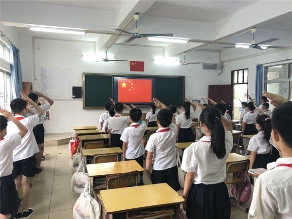 根據(jù)國家衛(wèi)健委指導(dǎo)意見,低風(fēng)險(xiǎn)地區(qū)校園內(nèi)學(xué)生不需要佩戴口罩。5月21日,國務(wù)院新冠肺炎聯(lián)防聯(lián)控機(jī)智綜合組印發(fā)了《公眾科學(xué)帶口罩指引(修訂版)》,對(duì)“校園內(nèi)人員”佩戴口罩有了新規(guī)定:中小學(xué)校人員在校園內(nèi),學(xué)生和授課老師無需戴口罩。校園里摘下口罩的日子來之不易,老師和同學(xué)們終于又能見到彼此熟悉的容顏,脫下口罩,盡情享受新鮮空氣的味道。師生間的雙目對(duì)視,不約而同地露出了歡欣的笑容。云開疫散終有日,取得了階段性勝利的我們,依然不能放松???,孩子們還是乖巧地保持了健康距離,相信我們終究可以彼此擁抱,盡情歡笑。